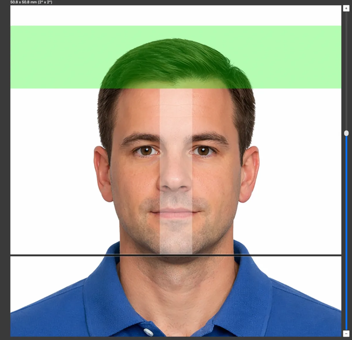 ✓ A full front view of the applicant’s face, with the head size (from bottom